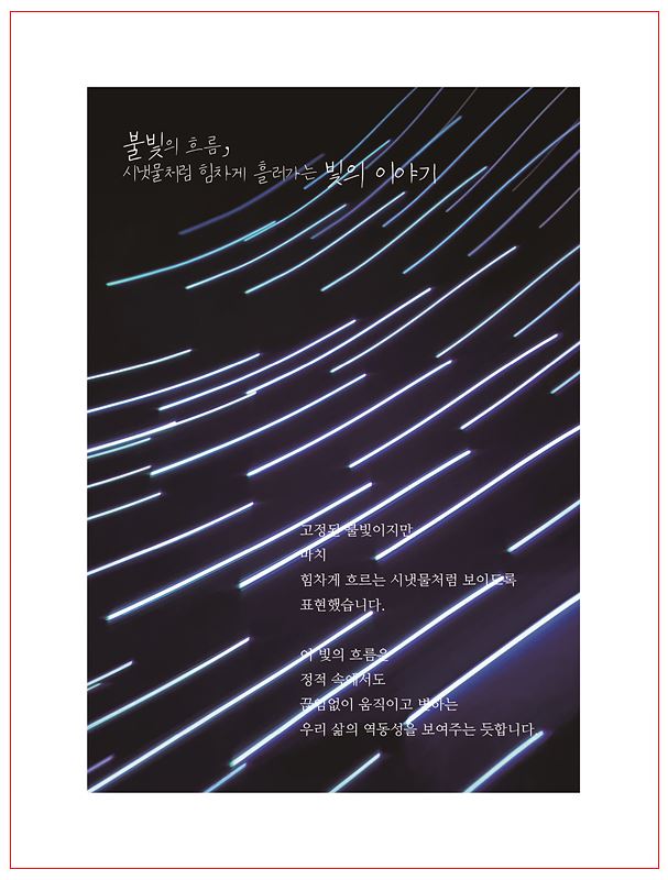 그러나 그 틈에서 우리는 더욱 묵직한 생각과 느낌을 보았습니다. 촉감, 소리, 냄새, 공기의 온도까지—눈으로 보이지 않던 요소들이 사진 속에 스며들어 있 습니다.